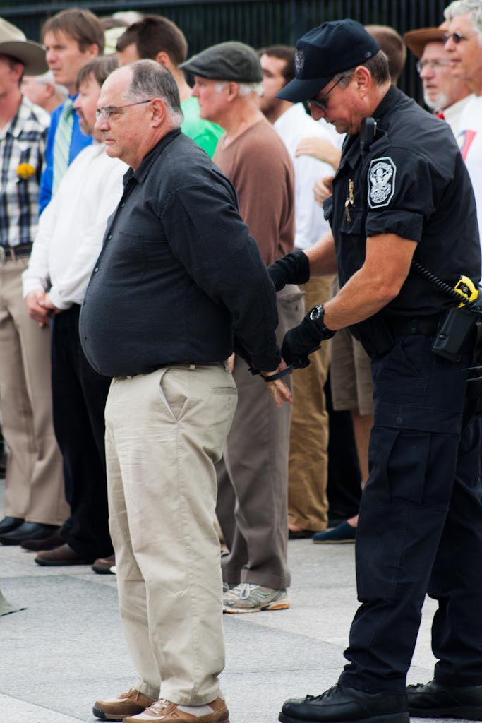 *I had the good fortune, after my arrest in Washington at the Tar Sands / Keystone XL ‘sit in’, to find myself in the back of the police van with a number of religious leaders, the most interesting among them being Fr. Paul Mayer, a colleague of the Berrigans. We had a wonderful time discussing the Berrigan brothers, the nature of civil disobedience and the moral underpinnings of direct action if it is not to degenerate into a useless exercise of hatred and division. I presented my controversial comparison of the guidance of Thomas Merton and Philip Berrigan with the ‘guidance’ of Chris Hedges and Bill Maher, much to the discomfort of my fellow passengers. The difference is one of compassion (to suffer or feel together) versus one of division and retribution.